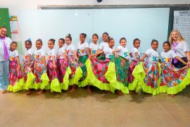 Um grupo de meninas que participa das atividades dos Serviços de Convivência e Fortalecimento de Vínculos (SCFV), do polo do Jardim Glória, em Várzea Grande, participou da abertura da Campanha Agosto Lilás, realizada, no último sá.