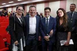 A primeira-dama de Mato Grosso, Virginia Mendes, acompanhada do governador Mauro Mendes, prestigiou nesta quinta-feira (09.02) a posse do procurador-geral de Justiça, Deosdete Cruz Júnior, para o biênio 2023-2025, na sede .