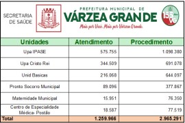 A Rede Pública de Saúde de Várzea Grande atendeu cerca de 1,3 milhão de pessoas durante o ano de 2022, realizando mais de 3 milhões de procedimentos médicos e odontológicos, entre consultas, exames, cirurgias, medicamentos e interna.