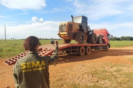 Foram aprendidos um trator pá carregadeira e uma motosserra e 20 hectares foram embargadosA Secretaria de Estado de Meio Ambiente (Sema-MT), por meio da equipe de Coordenadoria de Fiscalização de Flora, apreendeu equipamentos utilizados .