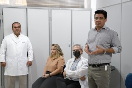 O prefeito de Várzea Grande, Kalil Baracat, e o secretário Municipal de Saúde, Gonçalo Aparecido de Barros, participaram de evento de acolhida, da segunda turma de médicos residentes, no Hospital e Pronto Socorro de Várzea Grande, .