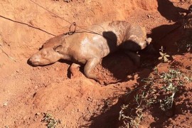 O Corpo de Bombeiros fez, ontem, a retirada de um anta com cerca de 200 quilos, que caiu numa valeta de ao menos três metros de profundidade, na região da Linha 20, em Lucas do Rio Verde. O animal estava ‘atolado’ na lama, .